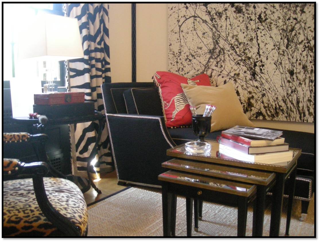 Not many pieces were without the zebra detail, as it is featured here on this bowl of apples. Isn't this chaise just perfect? It is Mr. Fhillips own design from his furniture collection with EJ Victor Company.